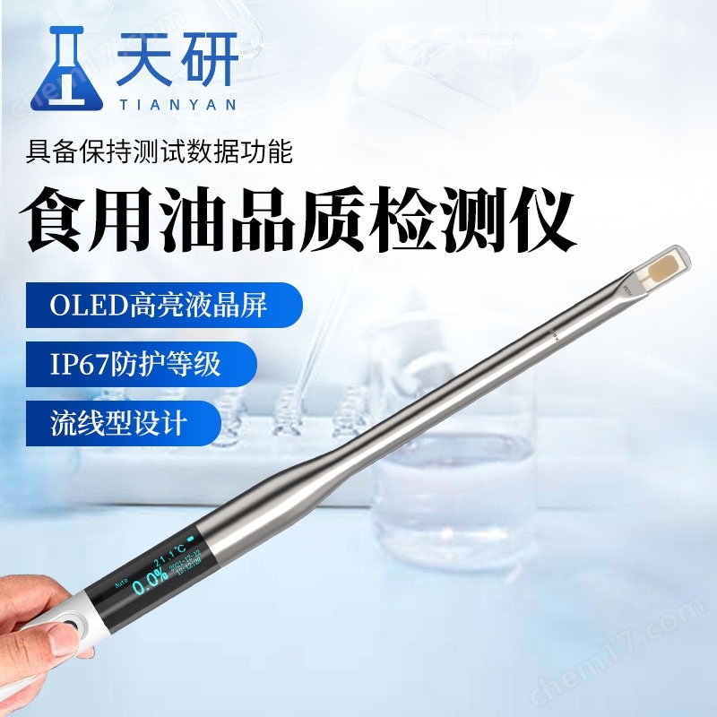 食用油脂是人們攝取能量和營養的重要來源,是加工食品的重要原料。油炸食品以其特-有風味廣受消費者喜歡。用于煎炸的食用油在高溫煎炸過程中發生一系列的物理、化學變化,這些變化會生成對身體健康有害的物質。目前,煎炸食用油的傳統檢測方法多為化學方法,這些方法必須在實驗室內由專業人員操作,費時費力,化學試劑的使用可能會傷害檢測人員健康,且化學廢劑污染了環境。食用油品質成分檢測儀是一種快速,安全,高效食用油品質檢測儀,能夠快速檢測食用油中的極性化合物組分(TPM)含量。本產品能夠在油溫較高的環境下使用,適用于各種煎炸的食用油品質檢驗。