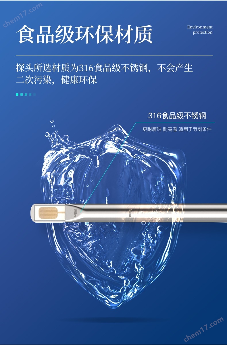 ■沒有二次污染 探頭所選材質均為食品級環保材質,不會產生二次污染。